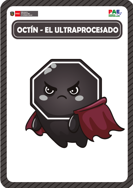 Asimismo, se incluyeron flashcards del personaje Octín, que representan alimentos ultraprocesados con octógonos, permitiendo contrastar opciones saludables y no saludables y reforzar mensajes de prevención en Educación Alimentaria Nutricional.