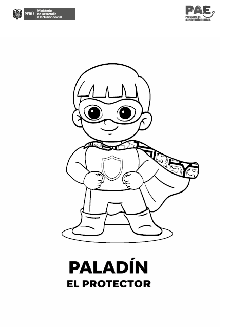 Las hojas para colorear son recursos educativos lúdicos diseñados para reforzar los mensajes de Educación Alimentaria Nutricional a través de actividades creativas. Se elaboraron hojas para colorear de todos los personajes SuperPAE —Paladín, Armando, Enery y Octín— así como de alimentos representativos de los grupos protectores, constructores y energéticos.